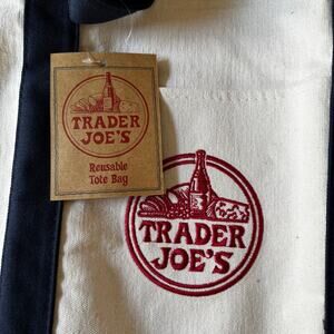 1 Large (not mini) Trader Joe's Canvas Reusable Fashion Tote Bag with red logo.