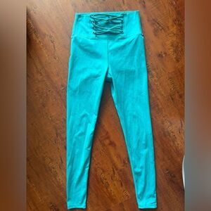 Stylish turquoise leggings with lace-up detail. Perfect for casual wear.