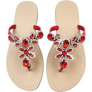 NEW Sparkling Bling Swarovski Crystal Rhinestone Sandals Beach Wedding Shoes Thongs Flip Flops