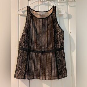 Like new-maybe worn once. Size 8 petite Loft black lace sleeveless blouse with nude lining. Has a side zipper. Armpit to armpit is 16 1/2” and center back length is 21”. Tote 15.