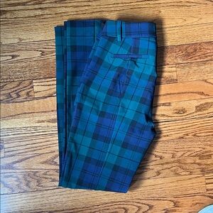 J. Crew Women's Blue and Green Plaid Straight Leg Pants