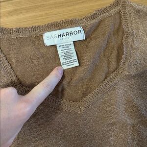 Sag Harbor Shimmering Tan Knit Top Petite Medium Beautiful copper balletcore
