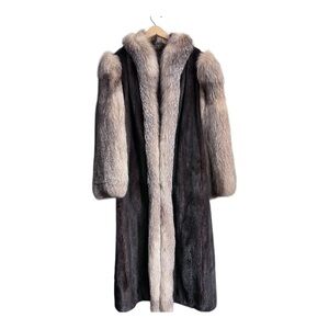 exceptional full length fur coat by Paul Madger furs (Toronto) crafted from genuine silver fox fur with real mink fur.