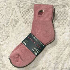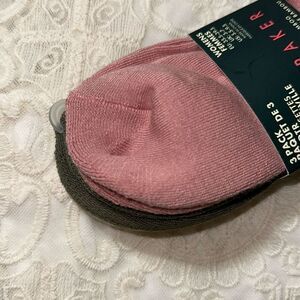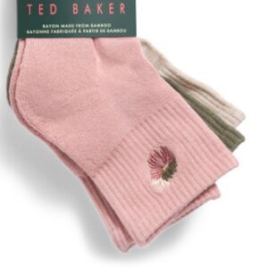 Ted Baker Pink Green Beige High Quarter Crew Floral Embroidery Stretch Socks 3pk