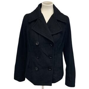 Old Navy Womens Medium Double Breasted Full Button Wool Blend Black Pea Coat