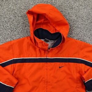 VTG Nike Jacket Boys 7 Orange Swoosh Windbreaker Sports Hood Coat Youth Kids Y2K