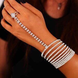 Silver Rhinestone Hand Chain Bracelet — A dazzling and versatile accessory that elevates any look.