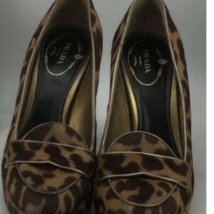 Very cool Prada Heels with leopard print - small platform on bottom and loafer design on toe.
