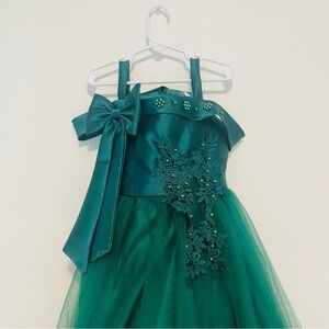 Elegant Green girl kid dress size 7y formal tulle event party emerald green