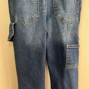Justice Girls Overall Jumper Denim Blue Size 10 Slim Skinny Stretch Fringe Hem