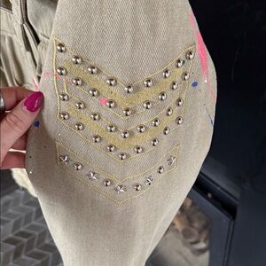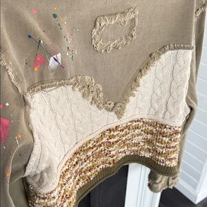 Super cute detailed cropped jacket. Button front with paint platter, sweater inlay, and grommet details.