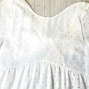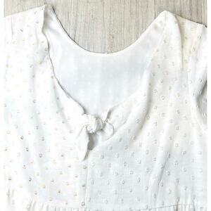 White Eyelet Gold Dot Summer Mini Dress Small Boho Sundress Babydoll Dress