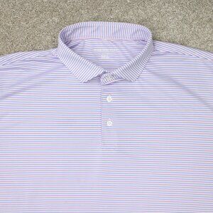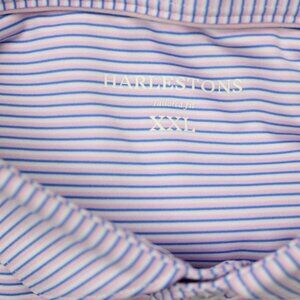 Harlestons Polo Shirt Mens 2XL XXL Pink/Blue Striped Tailored Fit Short Sleeve