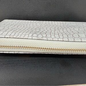 Stylish gray crocodile embossed wristlet wallet. Perfect for carrying essentials. Clean and slightly used.