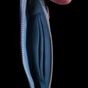 Elegant Coach wristlet in Teal Features a textured leather finish and a handy strap. Excellent condition