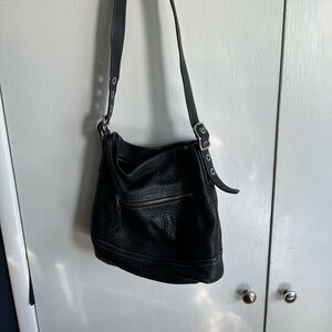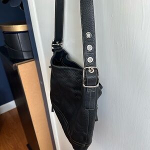 Sophisticated Coach handbag in black leather. Crafted with attention to detail.