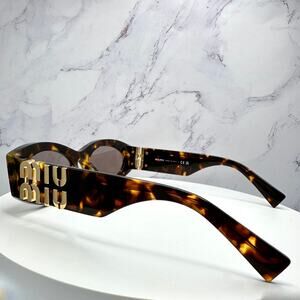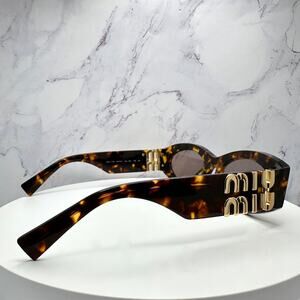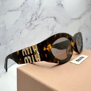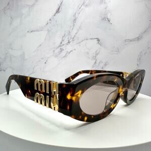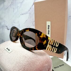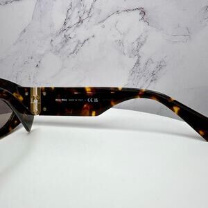 New MIU MIU Sunglasses Brown Tortoise Shell Oval Acetate Gold Logo Italy