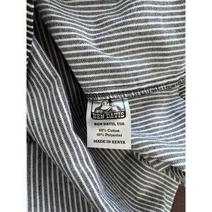 The Ben Davis 1/2 Zip Short Sleeve Black Stripe Work Shirt in XL is a classic and durable t-shirt designed for men. Made with a regular fit and featuring a collared neckline and short sleeves, this shirt is perfect for everyday wear or for working in various industries. The black striped pattern adds a stylish touch to the overall look, while the 1/2 zip feature provides added convenience and practicality. Made in Kenya, this shirt combines quality craftsmanship with a timeless design that will stand the test of time.