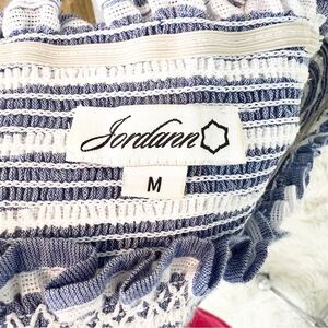 JORDANN BLUE WHITE STRIPE OFF SHOULDER SMOCKED BLOUSE WOMENS SZ MEDIUM