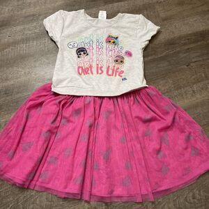 Girls L.O.L. Surprise shirt DRESS “Art is Life” PINK tutu Size XXL (18) EUC