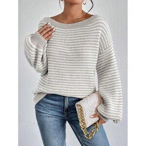 Features: Ultra-soft and breathable knit sweater with bold stripes and a relaxed oversized fit. The classic crew neck is versatile enough to pull off-the-shoulder for a flirty, trendy vibe. Makes everyday comfort and style effortless!