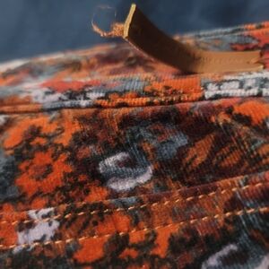 Make a bold statement with these eye-catching corduroy pants featuring a stunning floral print in rich burgundy, red, and blue tones. Perfect for creating unique fall and winter outfits, these pants combine comfort with style. Ideal for casual outings, creative workspaces, or artsy weekend adventures. The distinctive pattern and warm colors make these pants a versatile piece that pairs beautifully with solid-colored sweaters and tops.