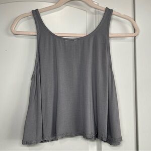 POL Crochet Lace Trim Sleeveless Grey Cropped Top Small