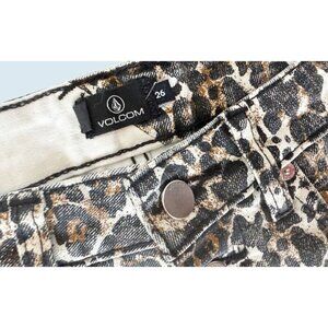 Great pair of jeans by Volcom. Animal print allover. Hi Rise. Exposed button fly. Skinny fit. Stretch fabric. 92% cotton / 7% polyester / 1% elastane. Size 26. Pre-owned and gently worn in really nice condition!