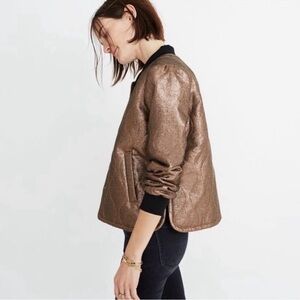 FEATURES/ACCENTS: Chocolate brown corduroy collar. Gray canvas jacket with chest and side pockets. Warm Sherpa lining. Perfect for keeping warm in the fall or winter.