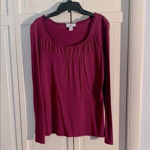 LOFT by Ann Taylor Wine Color Ruched Long Sleeve Blouse EUC