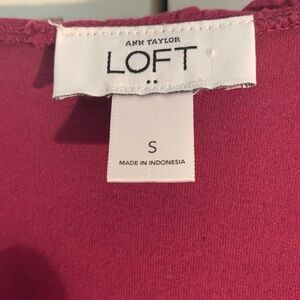 This stylish purple/wine colored blouse from LOFT by Ann Taylor showcases a ruched & ruffled design along the neckline. Perfect for both casual and formal settings, this top offers a blend of comfort and elegance.
