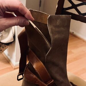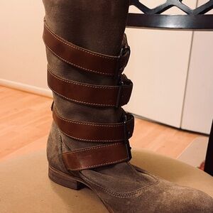 H By Hudson Brown Suede Strap Boots; pre owned still in good condition.