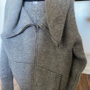 Cozy cowl neck sweater by NSF. Soft gray knit. Perfect for layering.