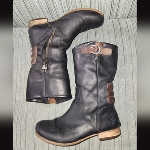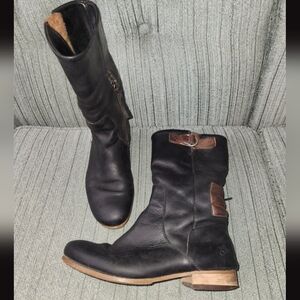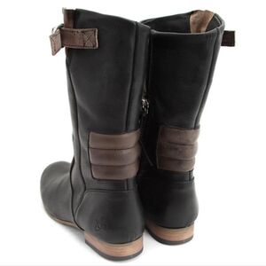 🌼 John Fluevog Kipo Radio Boots. Hybrid motocross engineer designed boot, atlas leathers with a shiny buff in the upturned toe, an inside zipper access, motocross pads above the heel cups, adjustable gusset along the topline, stacked Tunite heel and sole, soft rubber soleplates, The Radio KIPO was all about the cool airwaves.