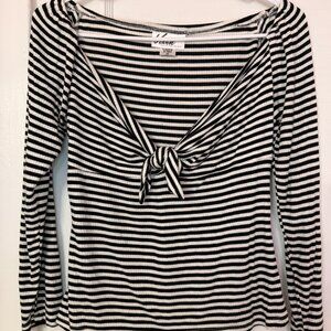 This listing is for a Vixen by Micheline Pitt Striped Black and White Tie-me-up Top in the size Medium