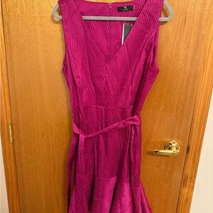 Natori Scroll Jacquard Ruffle Dress / Vibrant Pink Mini Dress