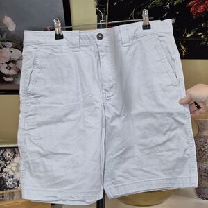 Great, worn in denim shirt. A few little stains on upper left arm and one light faded dot on the right arm. The photos look like there's some stains on the front but that's just a shadow or something.