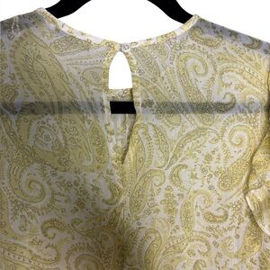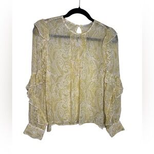 Yellow Paisley Ruffle Romantic Sheer Lucky Brand Long Sleeve Blouse Size XS