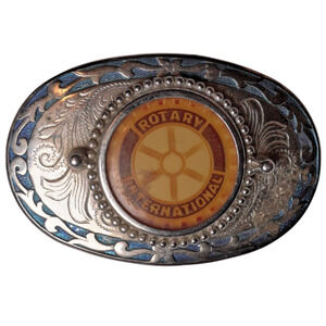 VTG Rotary International Belt Buckles Western Ornate Collectible Oval Centerpice