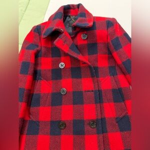J. Crew Buffalo Plaid Wool Pea Coat Red & Navy Double Breasted Size 00P