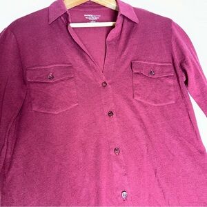 Majestic Filatures Paris Burgundy Red Cotton Cashmere LS Button Up Shirt Top S