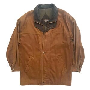 Johnston & Murphy Leather Field Coat Jacket Mens Size 42 Brown Lambskin Two Tone