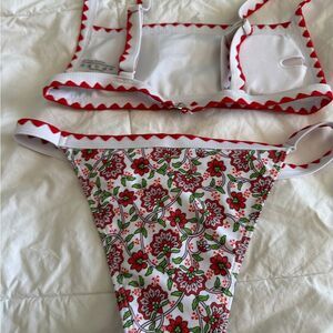 Shein Bikini Set XS Floral Red White Bralette Top and Triangle Bottom