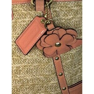 Coach Alexandra Straw Studded Tote Bag In Natural/Coral Peach F21959