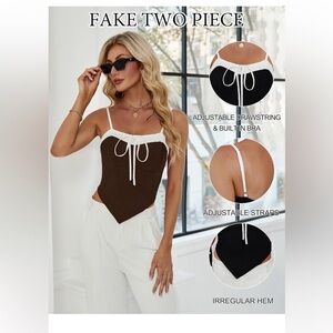 Cute Y2K style with contrast trim, adjustable tie detail, and pointed hem for a super flattering fit. Perfect for summer outfits, going out looks, or pairing with jeans, trousers, or skirts.