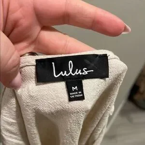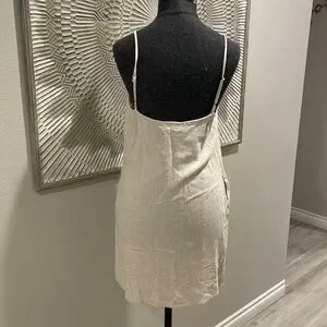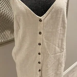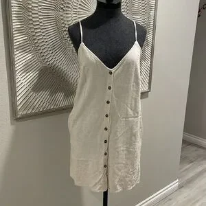 Lulus Cream Linen Blend Button Down Dress with pockets Medium