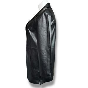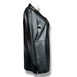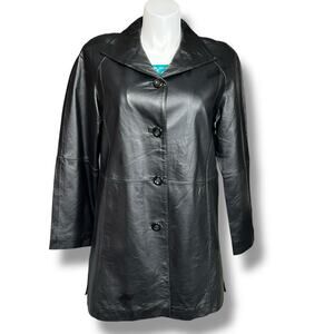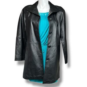 Leather Jacket Long Coat Collared Button Closure Black East 5th