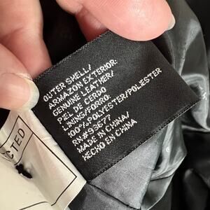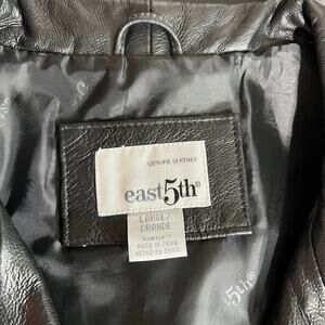 East 5th Womens Leather Jacket Long Coat Collared Button Closure Black Large