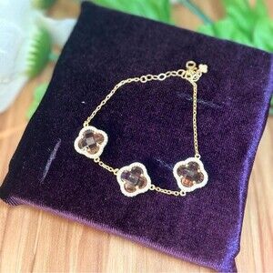 Elevate your everyday elegance with this stunning gold-plated bracelet, meticulously crafted from 925 stamped sterling silver. Showcasing three mesmerizing four-leaf clover pendants, each adorned with a Zultanite gemstone that beautifully shifts color from soft champagne to deep olive depending on the light, this bracelet is a true celebration of subtle brilliance.