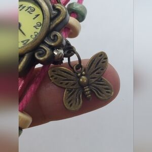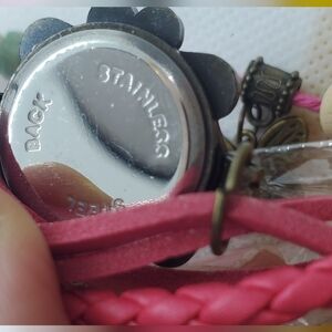Quartz Women's Pink Watch with Braided Leather Strap